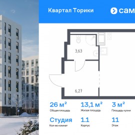 Строим кварталы для жизни с заботой о будущем. Предлагается квартира студия комфорт-класса 25, 99 кв.м в корпусе 1.1 на 11 этаже, в ЖК «Квартал Торики» Квартира с предчистовой отделкой. Доступность дополнительных опций уточняйте у застройщика. Приобрести квартиру возможно по...