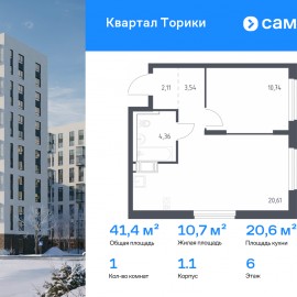 Строим кварталы для жизни с заботой о будущем. Предлагается 1-комнатная квартира комфорт-класса 41, 36 кв.м в корпусе 1.1 на 6 этаже, в ЖК «Квартал Торики» Квартира с предчистовой отделкой. Доступность дополнительных опций уточняйте у застройщика. Приобрести квартиру возможно...