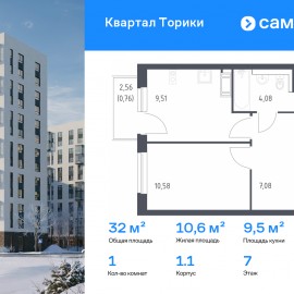 Строим кварталы для жизни с заботой о будущем. Предлагается 1-комнатная квартира комфорт-класса 32, 01 кв.м в корпусе 1.1 на 7 этаже, в ЖК «Квартал Торики» Квартира с предчистовой отделкой. Доступность дополнительных опций уточняйте у застройщика. Приобрести квартиру возможно...
