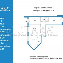 118721558 Очень привлекательная планировка! Просторная двухкомнатная квартира площадью 70, 02 кв.м. с функциональным зонированием и возможностью создать интерьер под себя. Уютная кухня 12, 62 кв.м. идеально подойдёт для семейных ужинов, а просторные комнаты 23, 50 и 14, 25 кв.м....