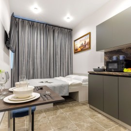 - Благодаря специфике планировки и небольшой площади (18-24 кв. м), студии являются бюджетным вариантом жилья (их цена начинается от 1,5 - 2 млн. руб). Его вполне себе могут позволить молодые семьи. Те, кто только начал вступать активно во взрослую жизнь и при этом хочет жить на собственной площади, не платя за аренду "чужому дяде". Правда, в элитных новостройках сегодня также предлагаются и улучшенные студии, площадью от 45 кв. м, здесь уже идет другой расклад цен.