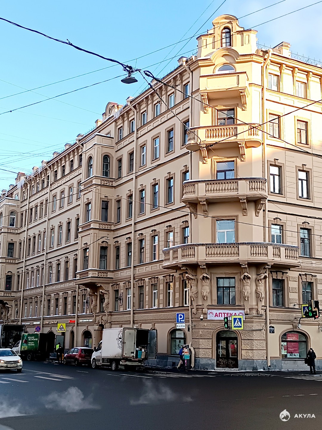 Красивый дом с недавно отреставрированным фасадом и аккуратной парадной, вход с улицы. Автобусная остановка в двух шагах от парадной.