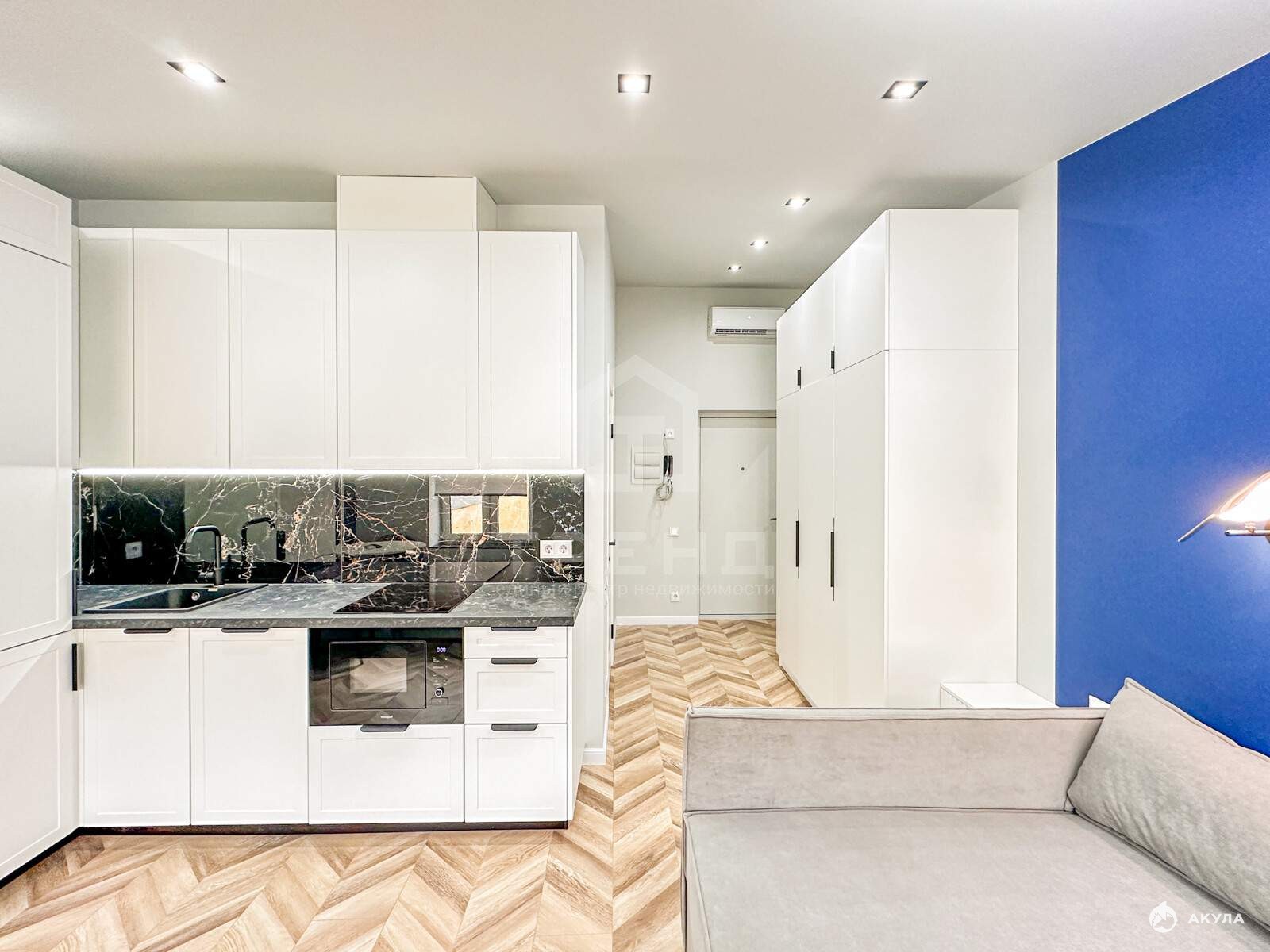 Эта уютная квартира-студия с дизайнерским ремонтом идеально подойдёт молодым специалистам, которые ценят комфорт и функциональность. Общая площадь - 22, 8 кв. м, из них жилая - 18, 8 кв. м, кухня - 2 кв. м. Студия находится на 7 этаже шестиэтажного дома, окна выходят во двор.