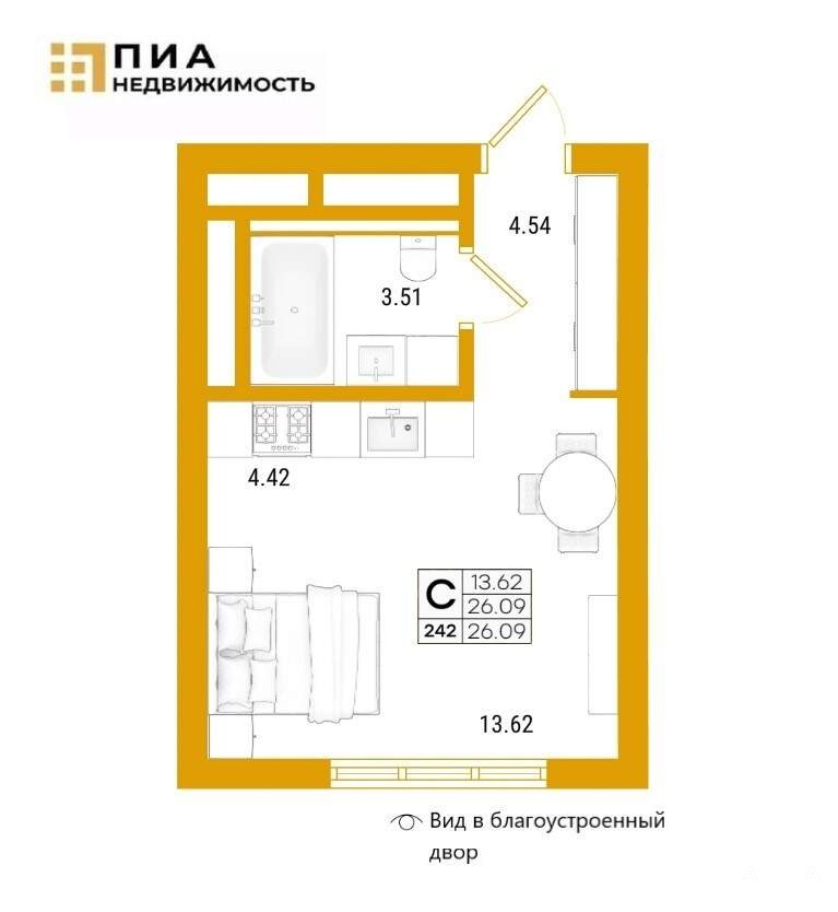 Квартира общей площадью 26, 09кв.м. Сдача объекта 1 кв. 2025 года. Расположена на 3 этаже, с которого открывается вид в благоустроенный двор! В квартире выполнена отделка White Box, это прекрасный вариант для тех, кто любит минимализм, а также для тех, кого захлестнет полет фантазии и желание привнести в квартиру ярких красок!