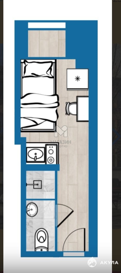 Эта стильная студия площадью 12 м² с смежно-изолированной планировкой полностью укомплектована всем необходимым для комфортной жизни.