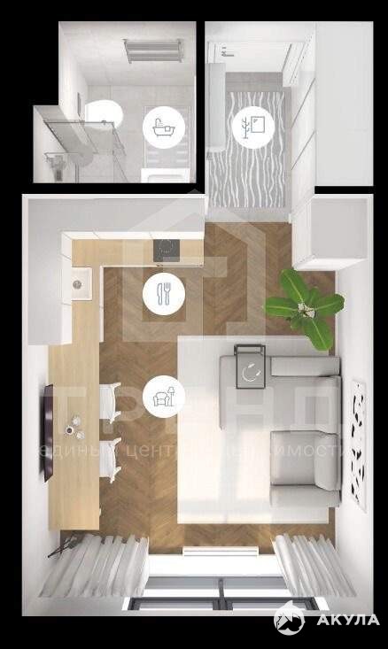 Функциональность: общая площадь квартиры - 22, 3 кв. м, из которых 16, 3 кв. м - жилая площадь. Студия идеально подойдёт для молодых специалистов или студентов, которые ценят комфорт и удобство.