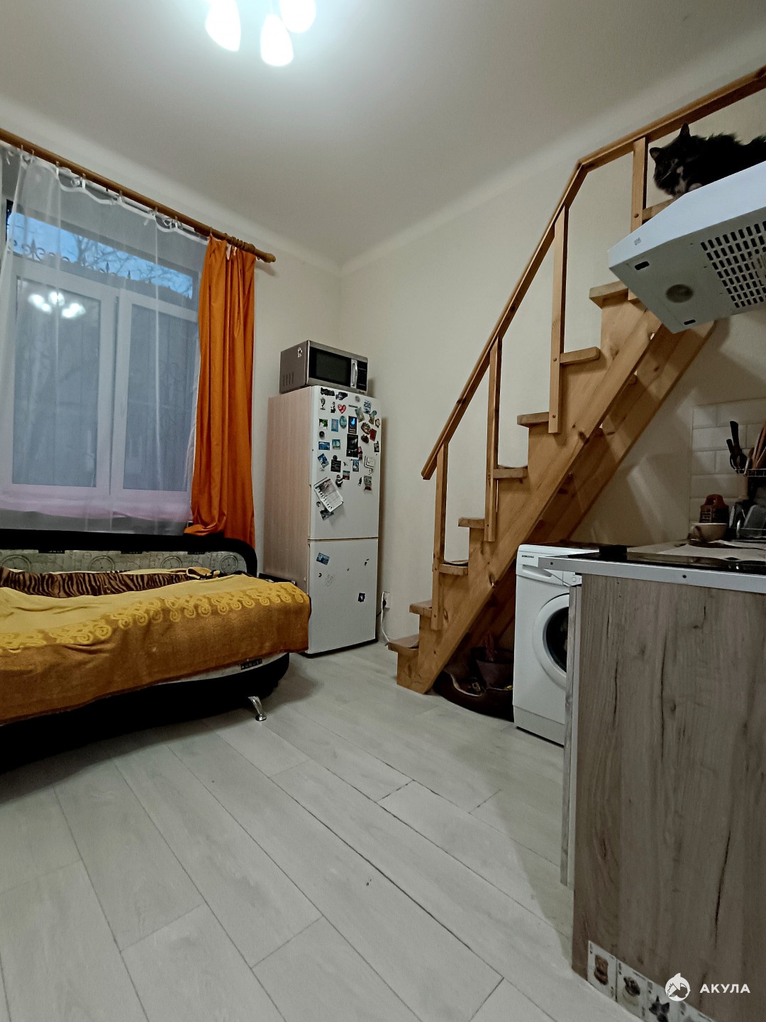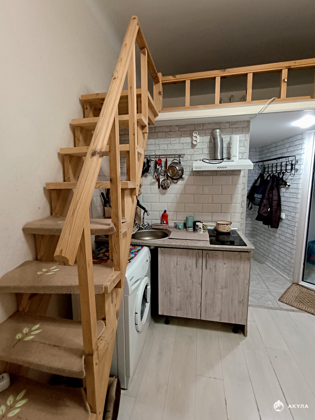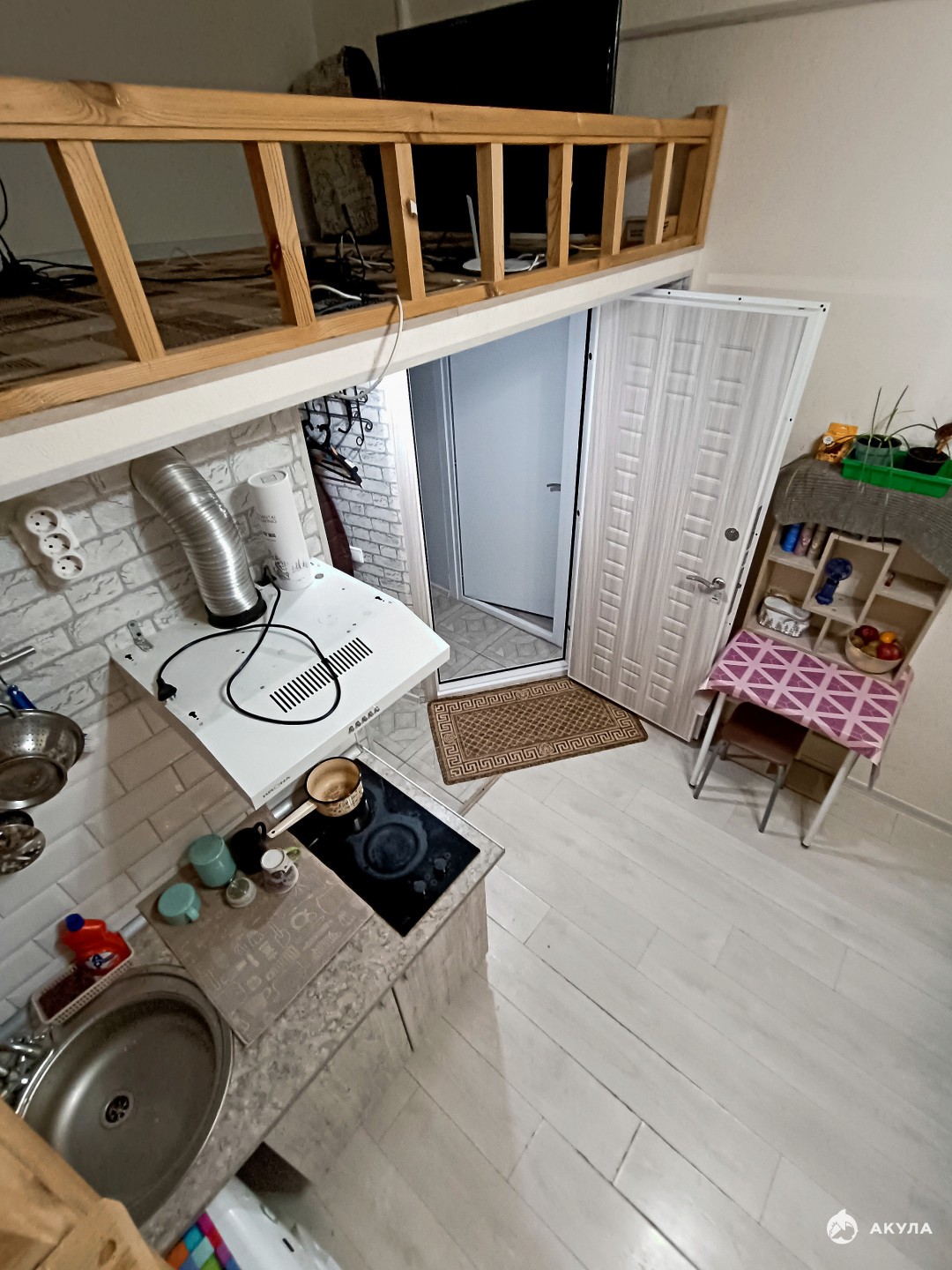Оборудованы отдельный совмещенный санузел, мини-кухня.Есть второй этаж для спальни( антресоли 6 кв м).