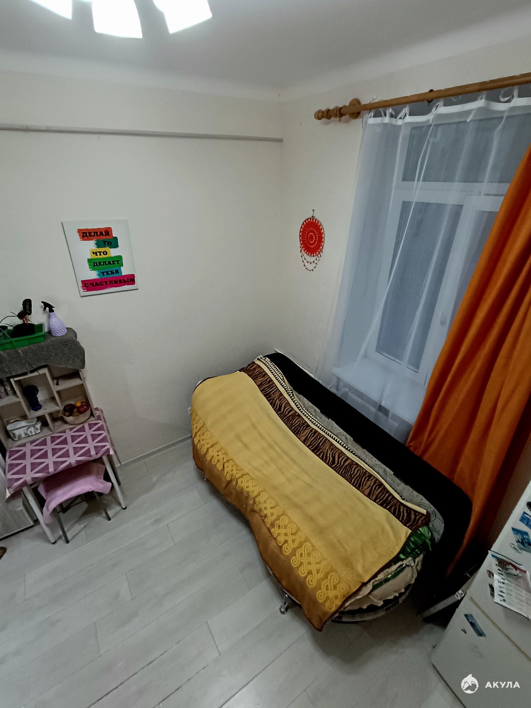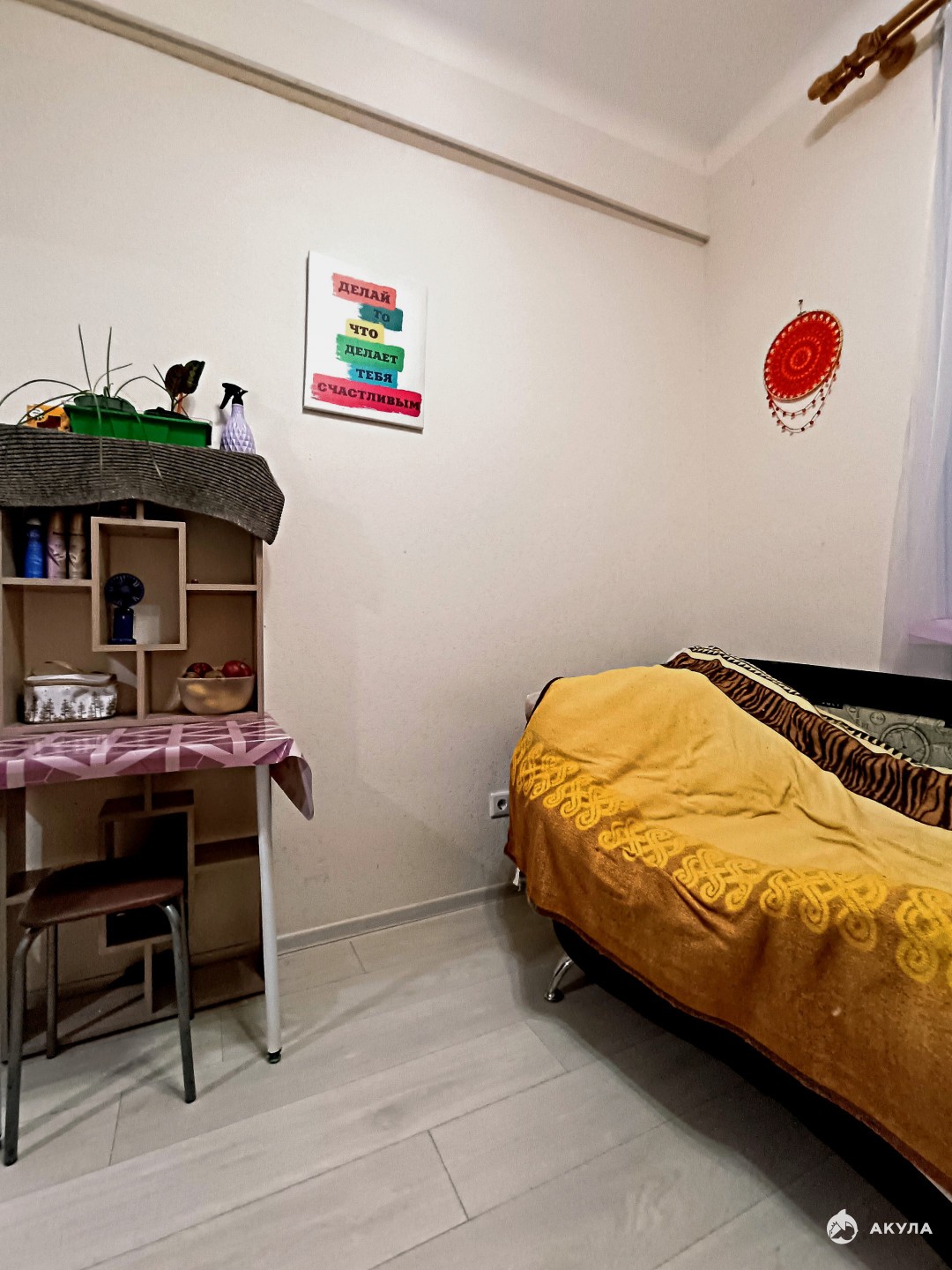 Высокий первый этаж, в окно не заглянуть с улицы.