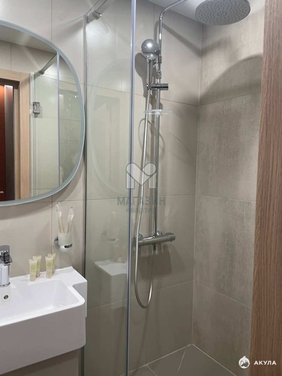 Пол: кварцвиниловая плитка; санузел — отделка плиткой