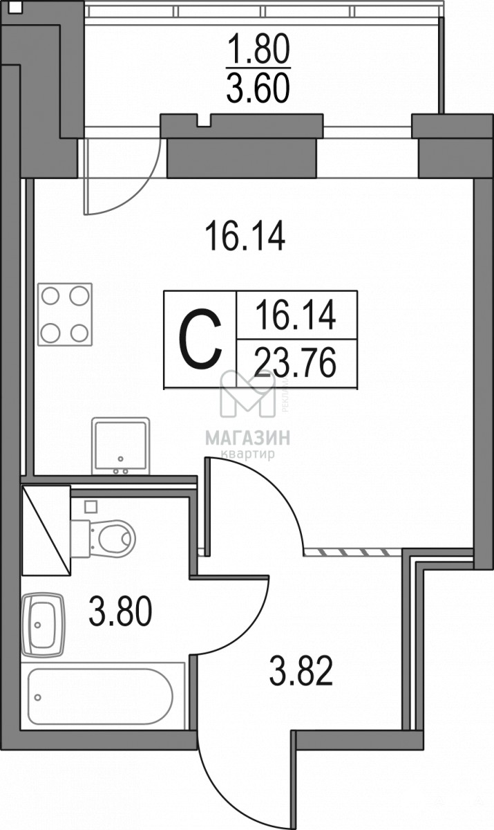 - 16.14 м²