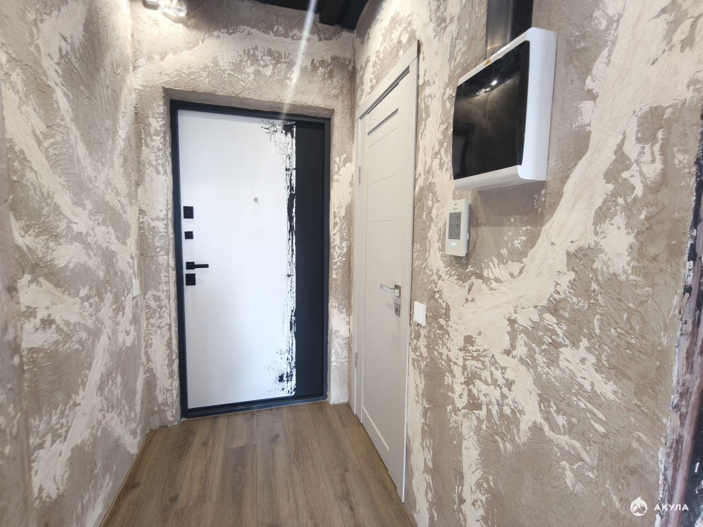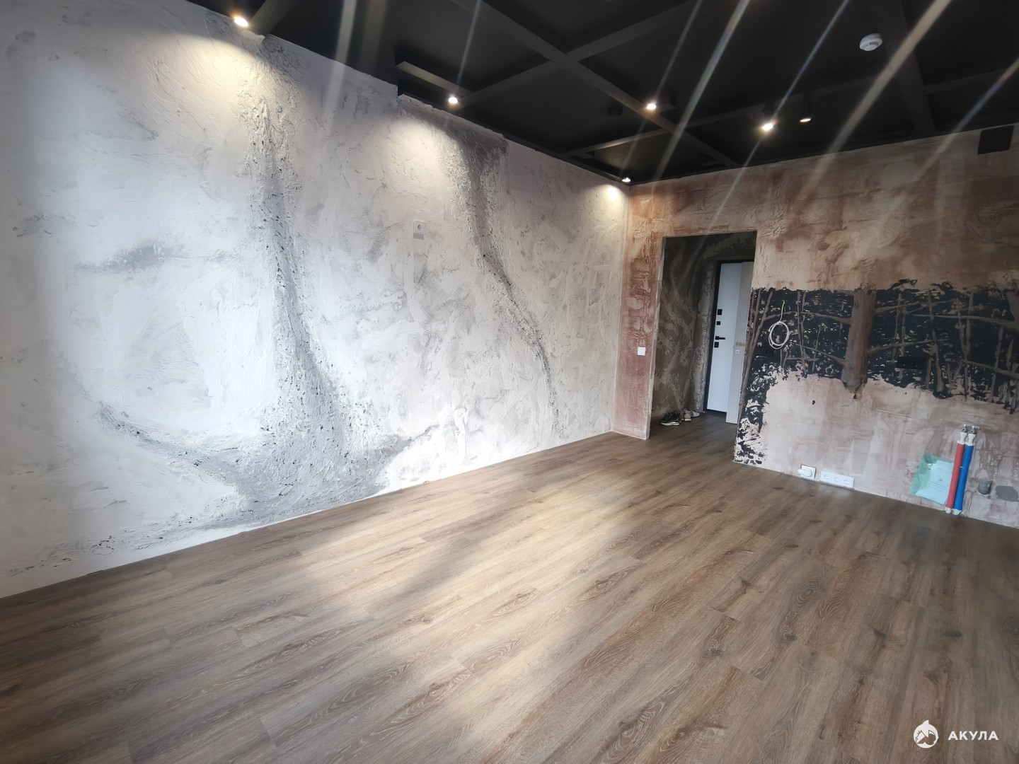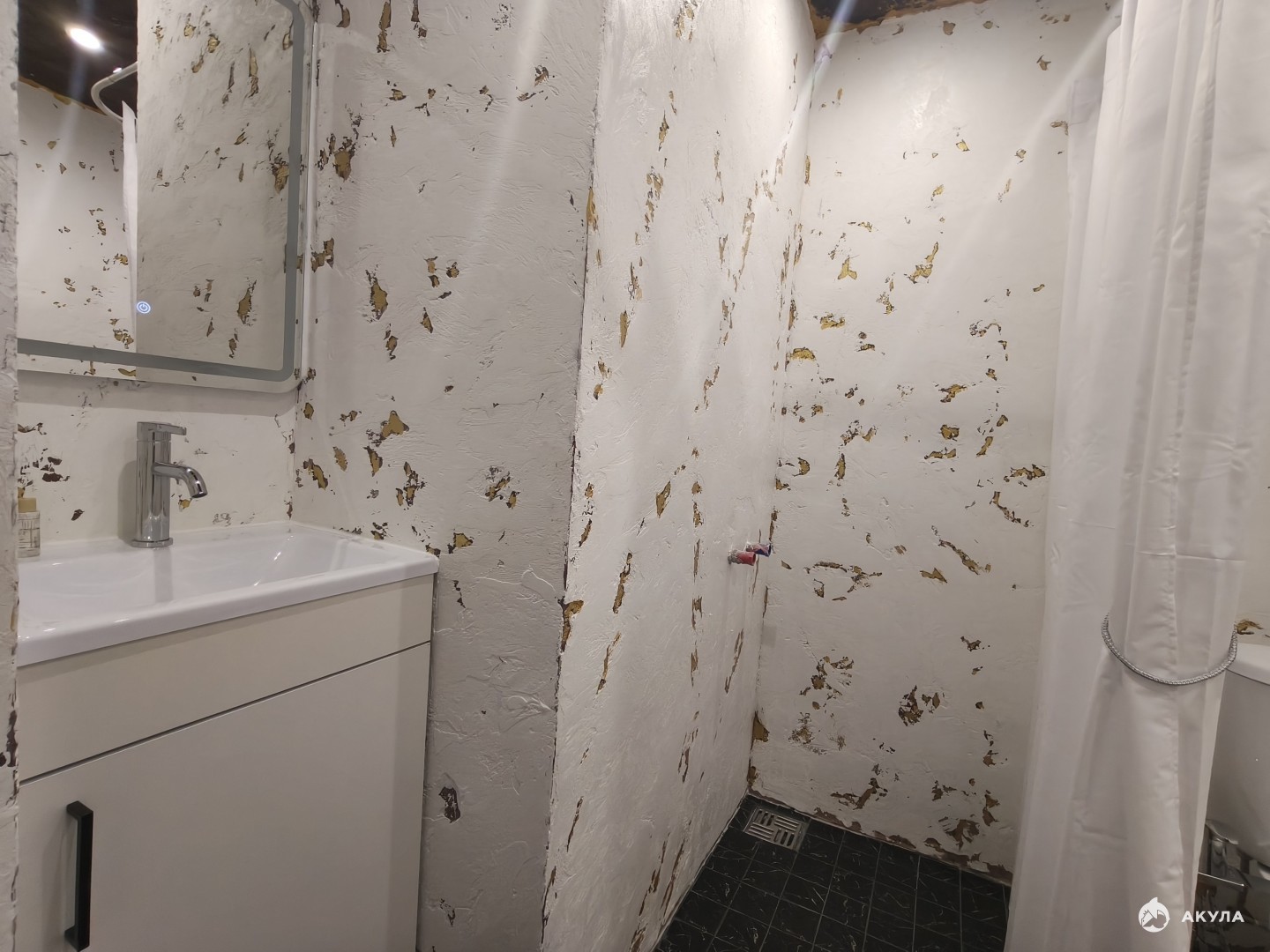 Использованы материалы премиум класса. На полу кварцвинил, стены - декоративная влагостойкая штукатурка с окрашиванием. Санузел капсульного типа, с хорошей сантехникой. Все выводы сделаны.