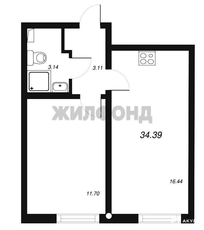 общая площадь квартиры 34, 39 м2