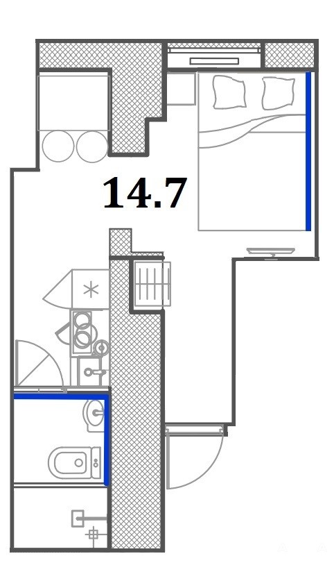 ✅ Общая площадь данного апартамента составляет 14, 7 кв.м.