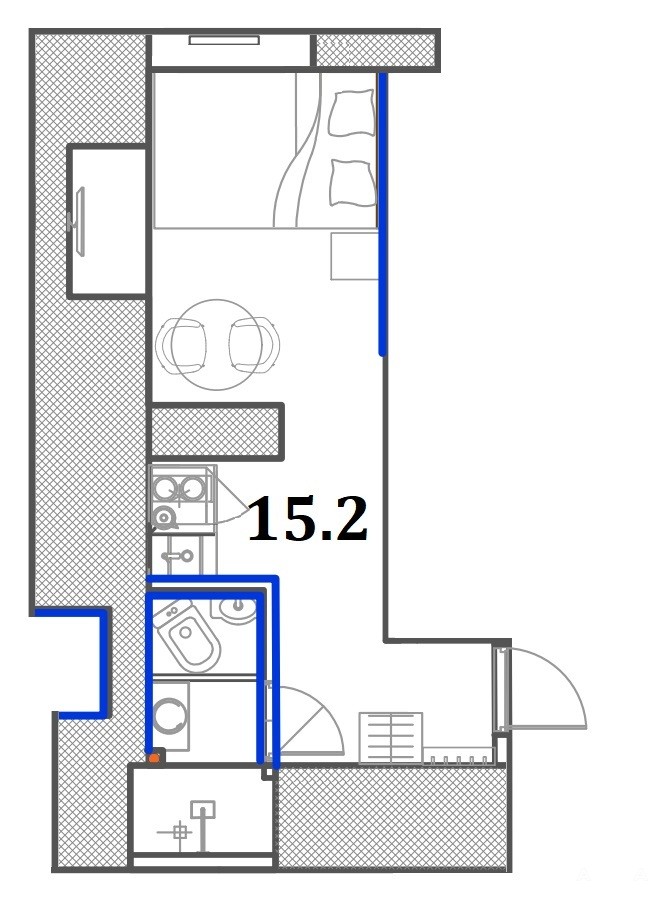 ✅ Общая площадь данного апартамента составляет 15, 2 кв.м.