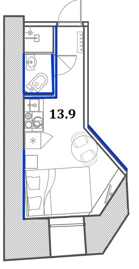 ✅ Общая площадь данного апартамента составляет 13, 9 кв.м.