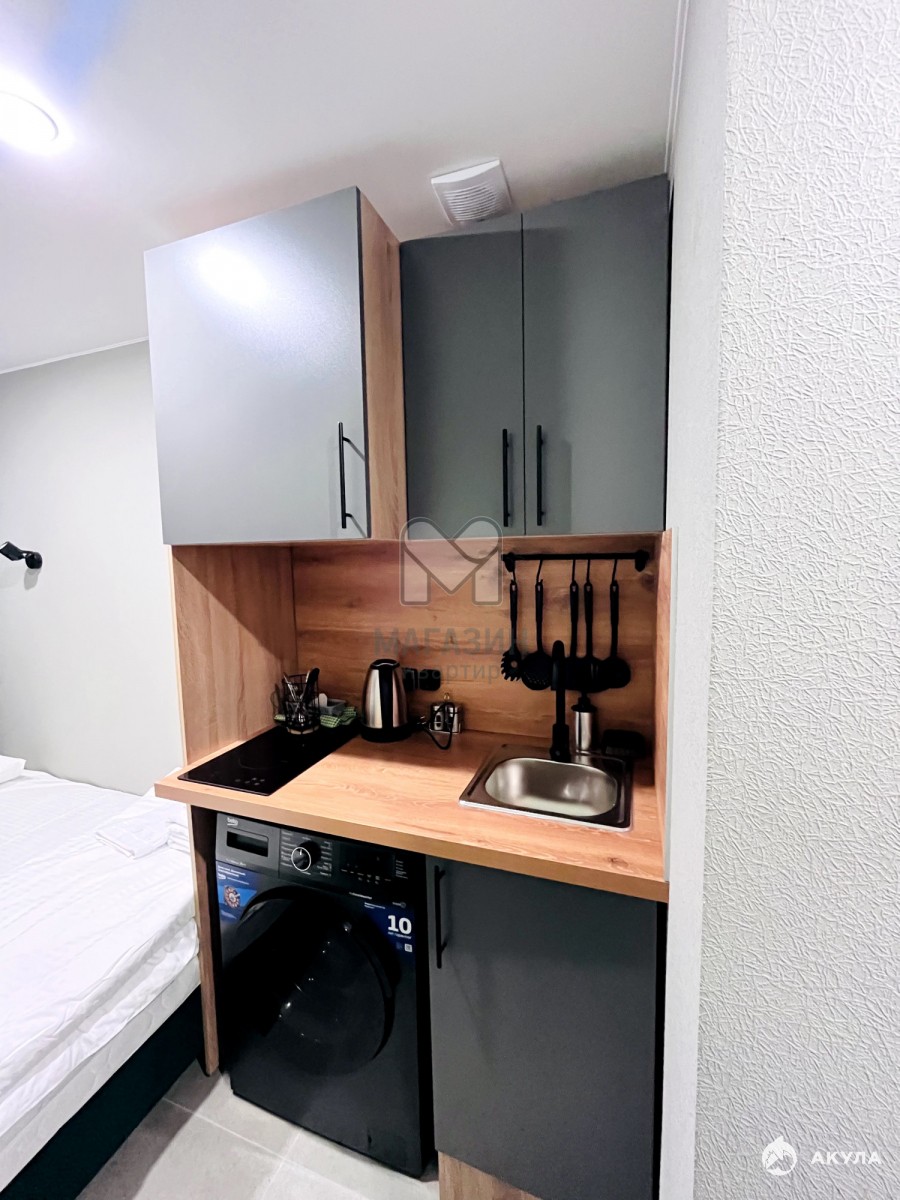 Студия с дизайнерским ремонтом полностью укомплектована: