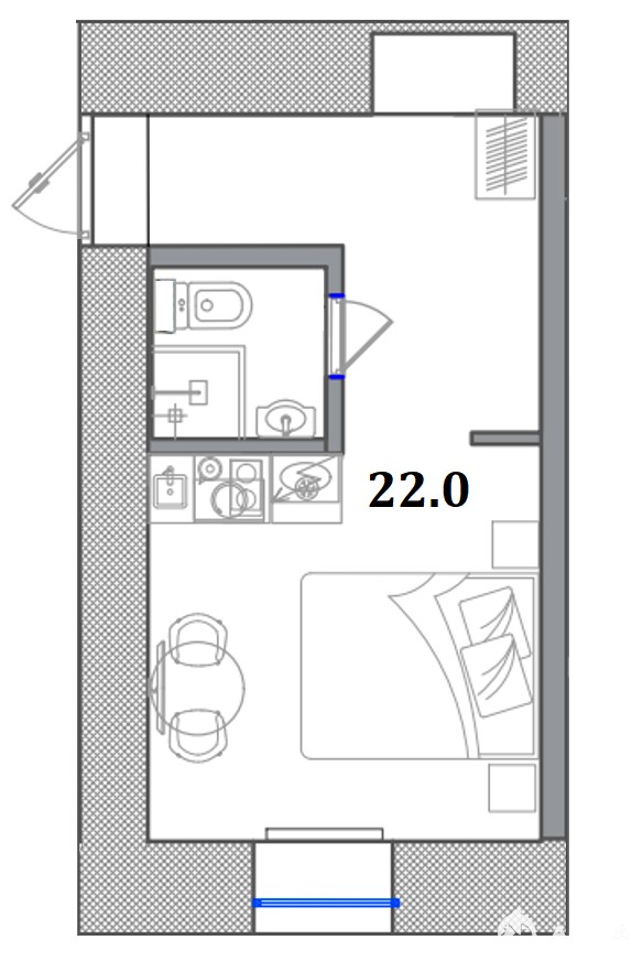 ✅ Общая площадь данного апартамента составляет 22, 0 кв.м.