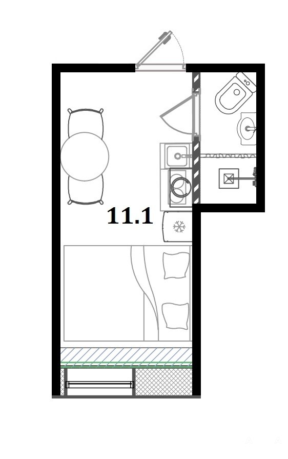 ✅ Общая площадь данного апартамента составляет 11, 1 кв.м;