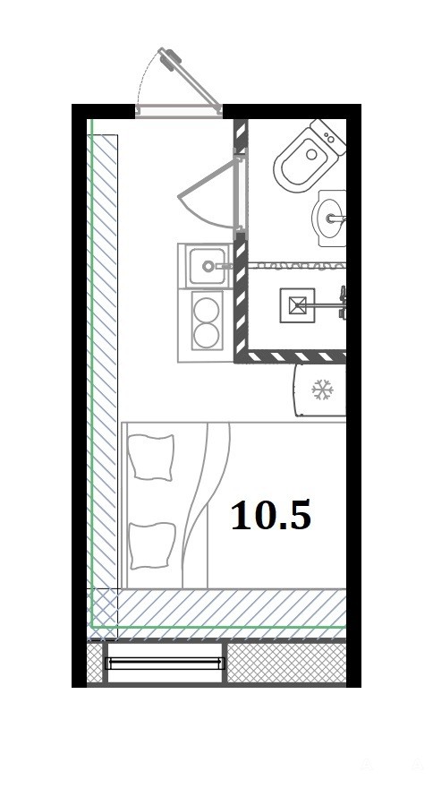 ✅ Общая площадь данного апартамента составляет 10.5кв.м;