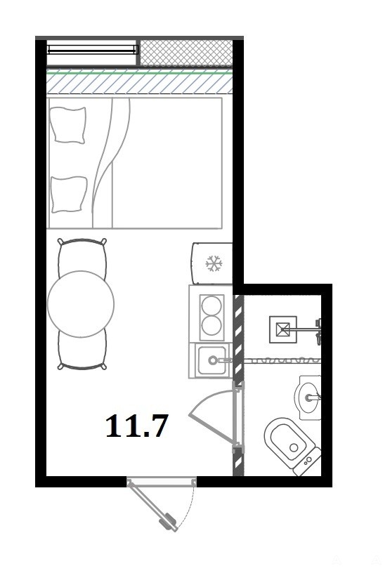 ✅ Общая площадь данного апартамента составляет 11, 7 кв.м;