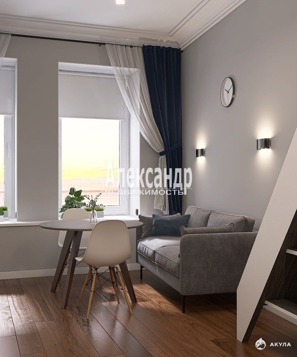 Вашему вниманию предлагается уютная 2-х этажная студия, общ.пл. 27 кв. м. , по полу 20кв. м. , совмещенный сан.узел, высота потолков – 3.2 м., на 5-м этаже 5-и этажного кирпичного дома. В историческом районе Петербурга, в Центральном.