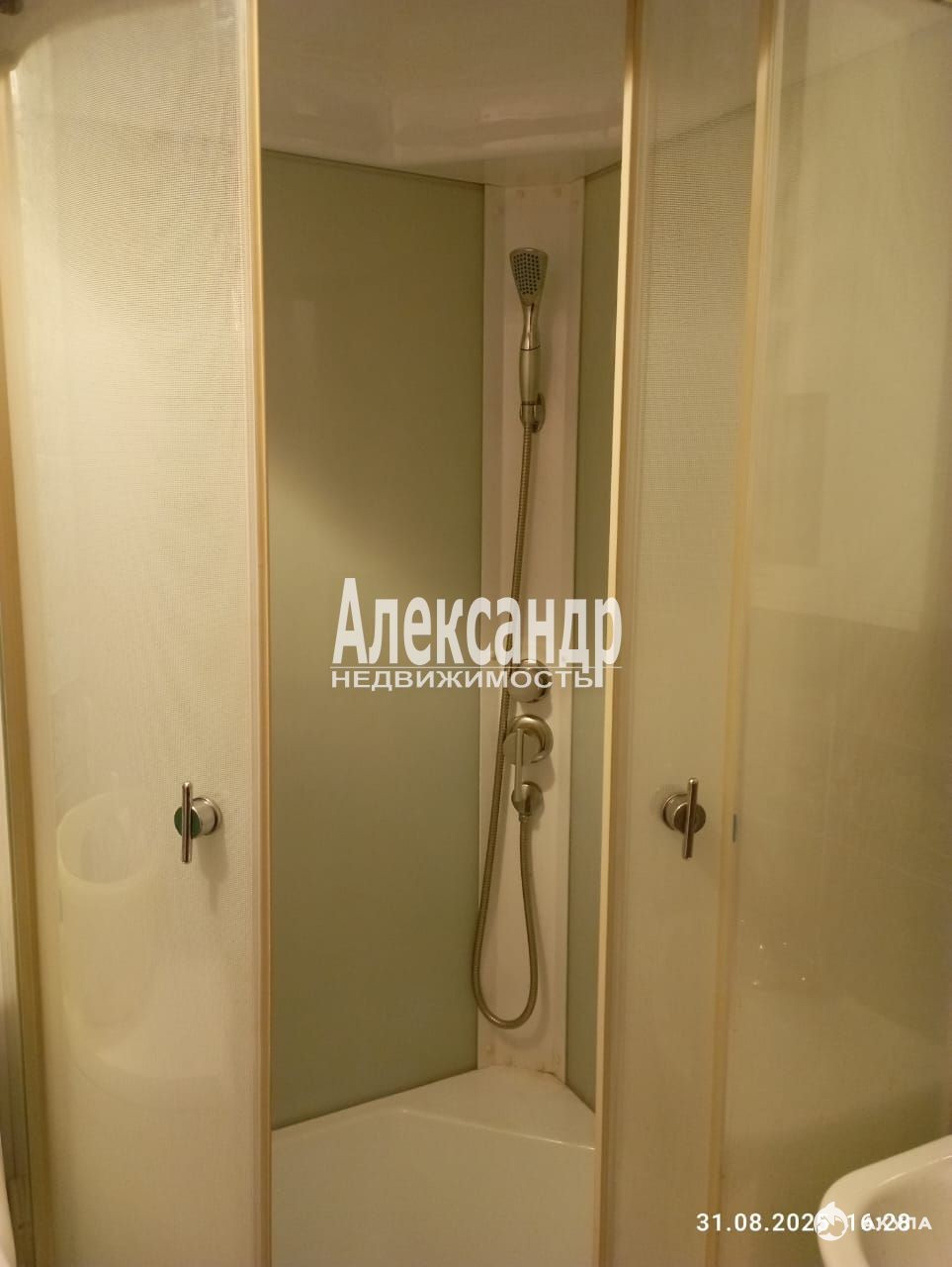 Студия в хорошем состоянии, потолок натяжной, высота 2, 5 м, на полу в комнате ковровое покрытие, в сан/узле кафель. В доме два лифта, есть домофон, этаж закрывается.