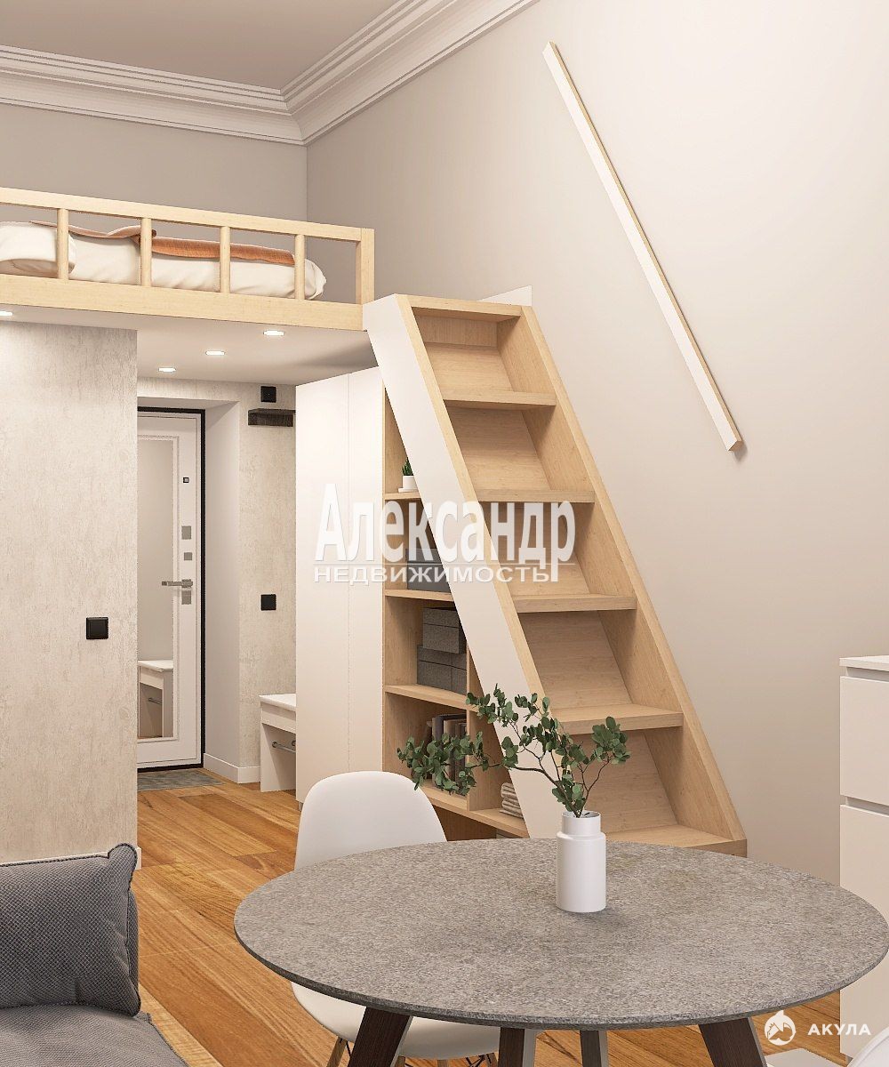 Вашему вниманию предлагается уютная 2-х этажная студия, общ.пл. 26 кв. м. , по полу 20кв. м. , совмещенный сан.узел, высота потолков – 3.81 м., на 5-м этаже 6-и этажного кирпичного дома. В историческом районе Петербурга, в Центральном.