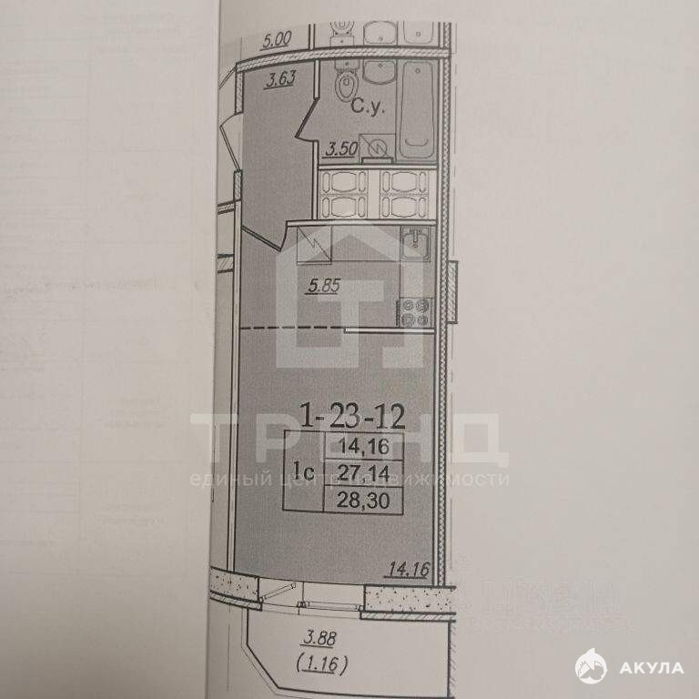 Общая площадь квартиры - 28, 3 кв. м, высота потолков - 2, 6 м. Просторная студия с косметическим ремонтом и совмещённым санузлом станет идеальным выбором для молодых специалистов или студентов. Балкон позволит наслаждаться видами на улицу и свежим воздухом.