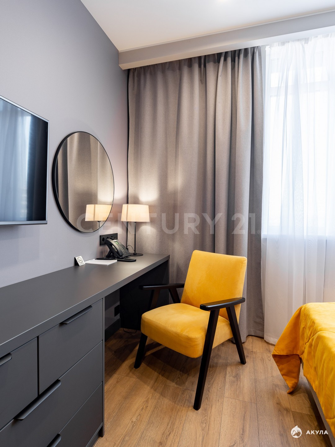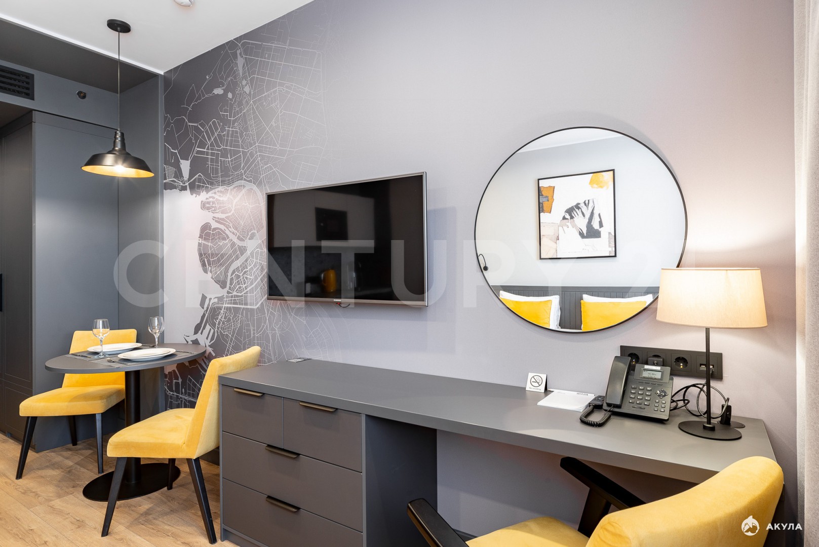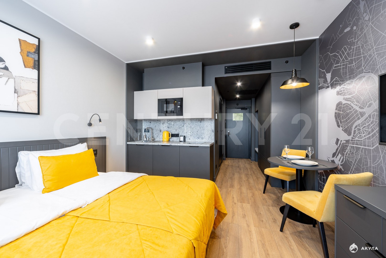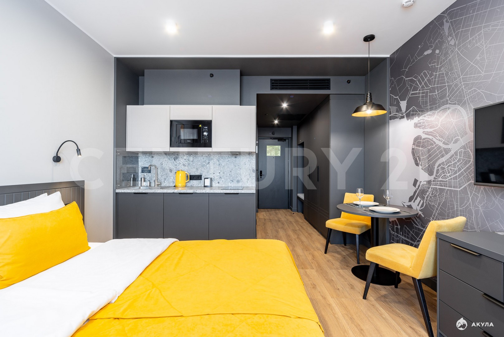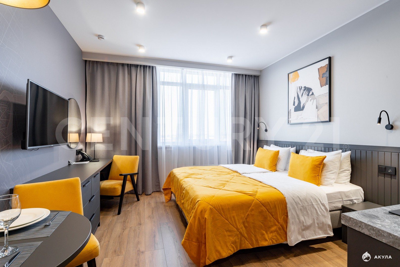 Номер Studio (23, 7 м²) на 14-м этаже. Вас ждут полностью подготовленные к проживанию апартаменты. Здесь есть все необходимое: от мебели и техники до посуды и мягких полотенец».
