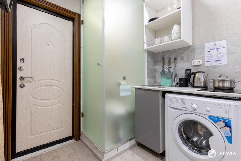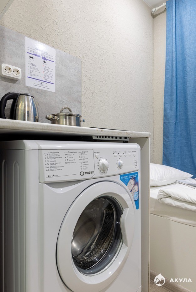 — Техника: ТВ, плита индукционная, стиральная машина, холодильник, бойлер, фен, светильники.