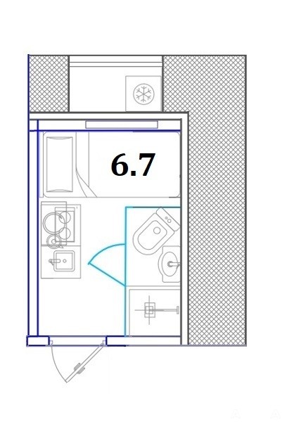 ✅ Общая площадь данного апартамента составляет 6, 7 кв.м.