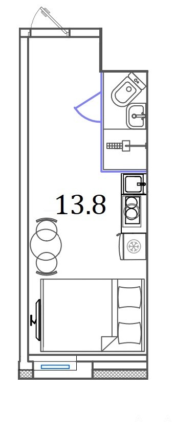 ✅ Общая площадь данного апартамента составляет 13, 8 кв.м.