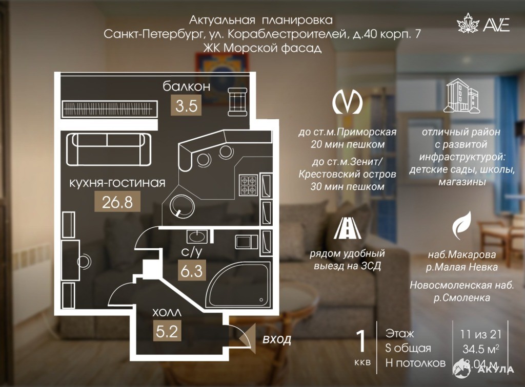 Хорошая логистика, 15 минут до метро Приморская. Сложившийся район, развитая инфраструктура.