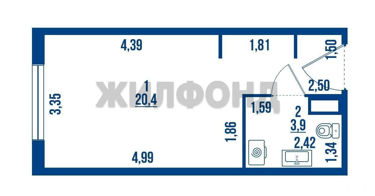 Студия, площадь 24, 3 кв. м, из них кухня - 5 м?.