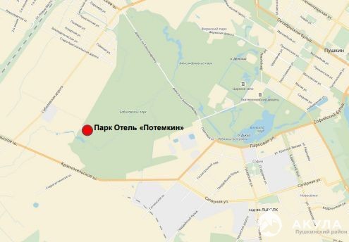 Гостиничный комплекс находится на границе дворцово-парковой зоны Царского Села, включающей Екатерининский дворец, Екатерининский, Александровский и Баболовский парки.