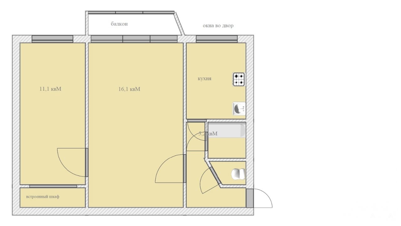 Комнаты площадью 16, 1 и 11, 1 квм