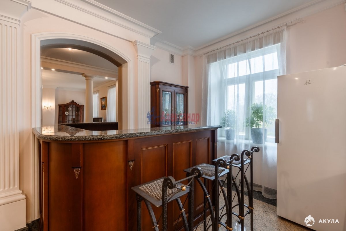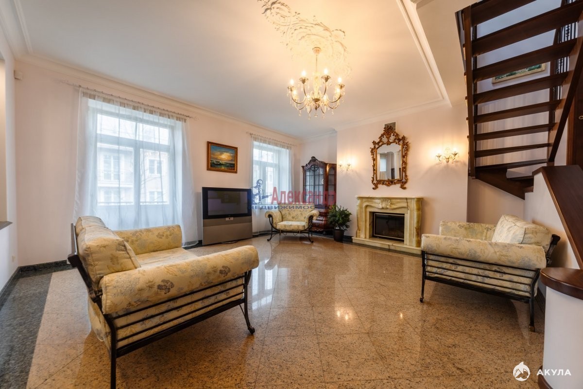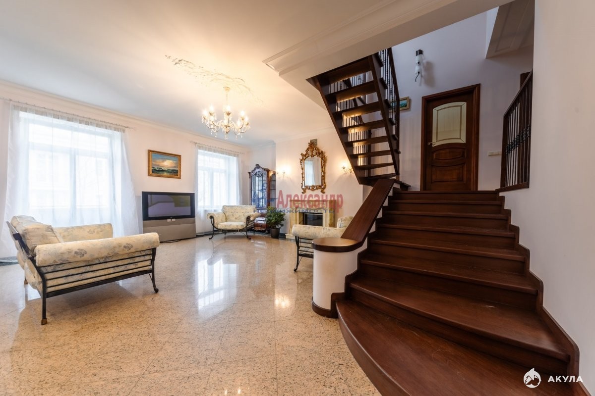 1571940 Для тех, кто достоин самого лучшего! Продается фешенебельная квартира с уникальным месторасположением и особой аурой, которая пленит Ваше сердце, разум и чувства. Квартира находится в лучшем дворцовом пригороде Санкт-Петербурга Пушкине (Царском селе). Расположена в историческом центре рядом с лицеем и Екатерининским дворцом. Окна выходят на Александровский дворец и улицу Малая. Через дорогу - Александровский парк! В кирпичном доме построенном по индивидуальному проекту в 2000 г. всего четыре квартиры и собственная придомовая территория огороженная кованым забором. Это самая большая многоуровневая квартира не только в доме, но и во всем Пушкине. Общ. пл. составляет 374, 8 м. кв. На 1-ом эт. встроенный гараж на два автомобиля (42, 5 кв.м), сауна (22, 5 кв.м) и хозяйственный блок (15, 4 кв.м);
