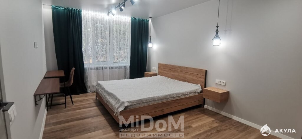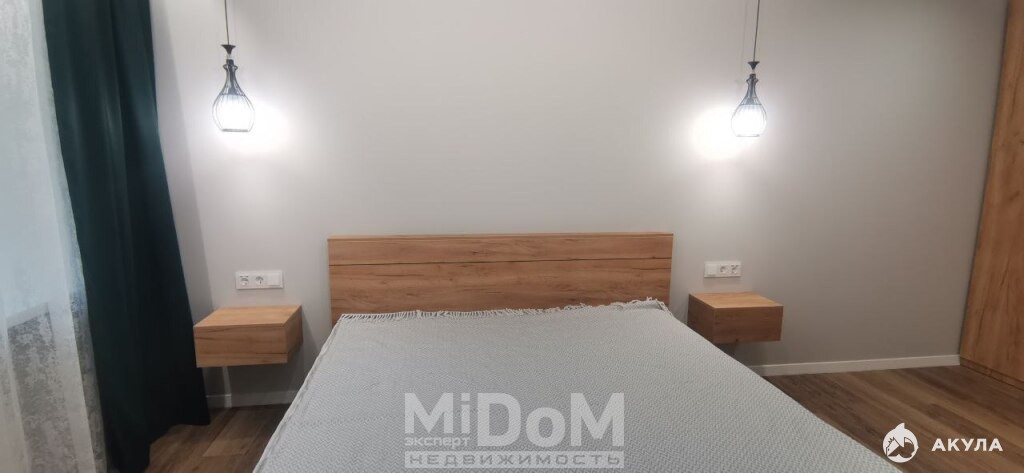 Грамотно выделенные зоны для системы хранения. Во всей квартире очень правильно зонирован свет. что позволяет использовать точечно при необходимости. Квартира сделана в лаконичных и спокойных цветах в современном стиле, полностью отвечающем современным тенденциям. В комнате удобная двуспальная кровать для комфортного сна и отдыха.