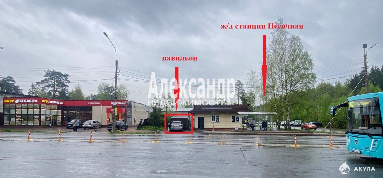 Остановка общественного транспорта прямо у павильона, в 200 м ж/д станция «Песочная», в 130 м отделение Почты России, администрация МО п. Песочный, вокруг жилой массив, в 600 м пляж на озере Курортного лесопарка, что увеличивает поток покупателей в курортный дачный сезон.