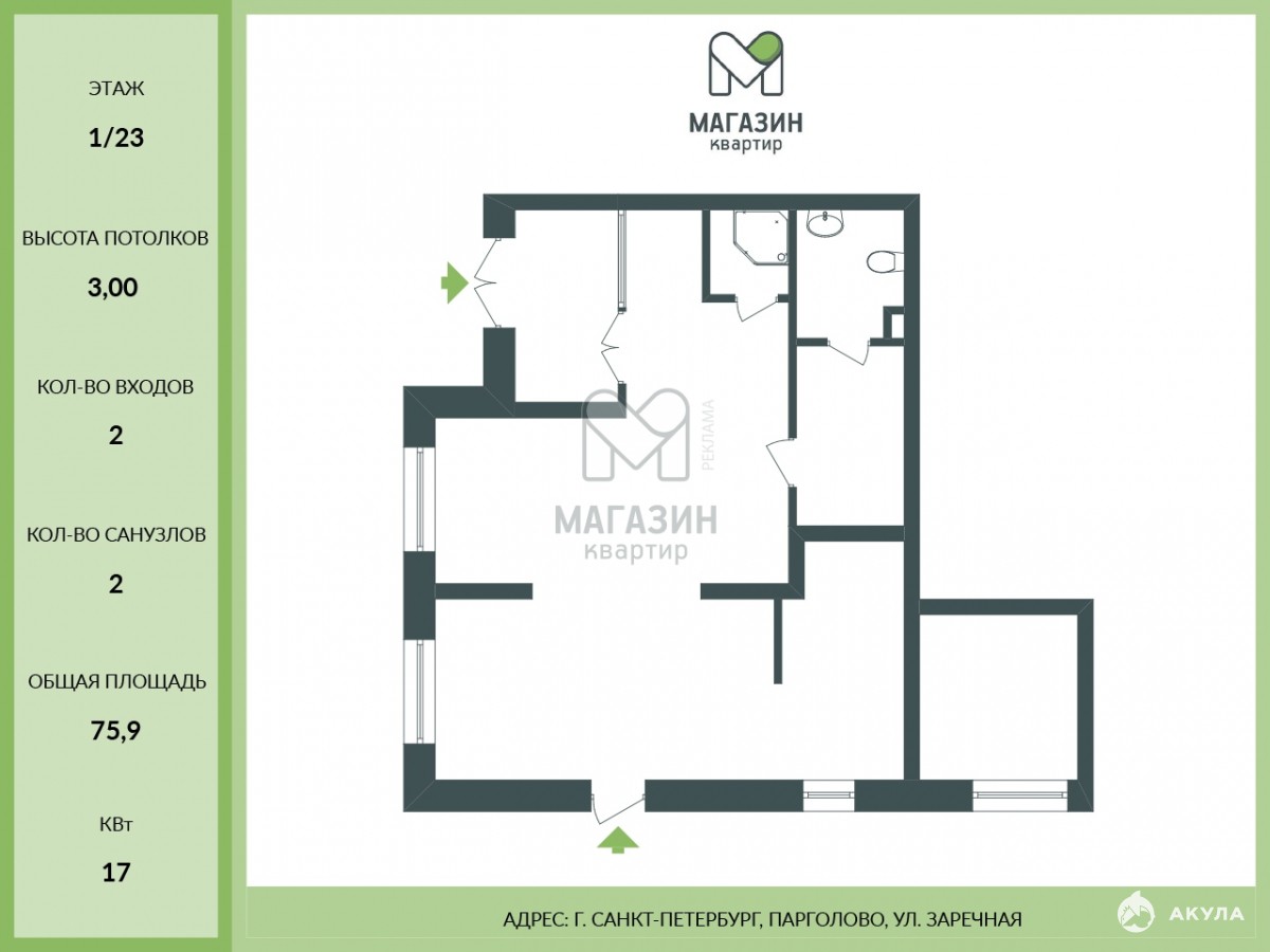 - 76 м²
