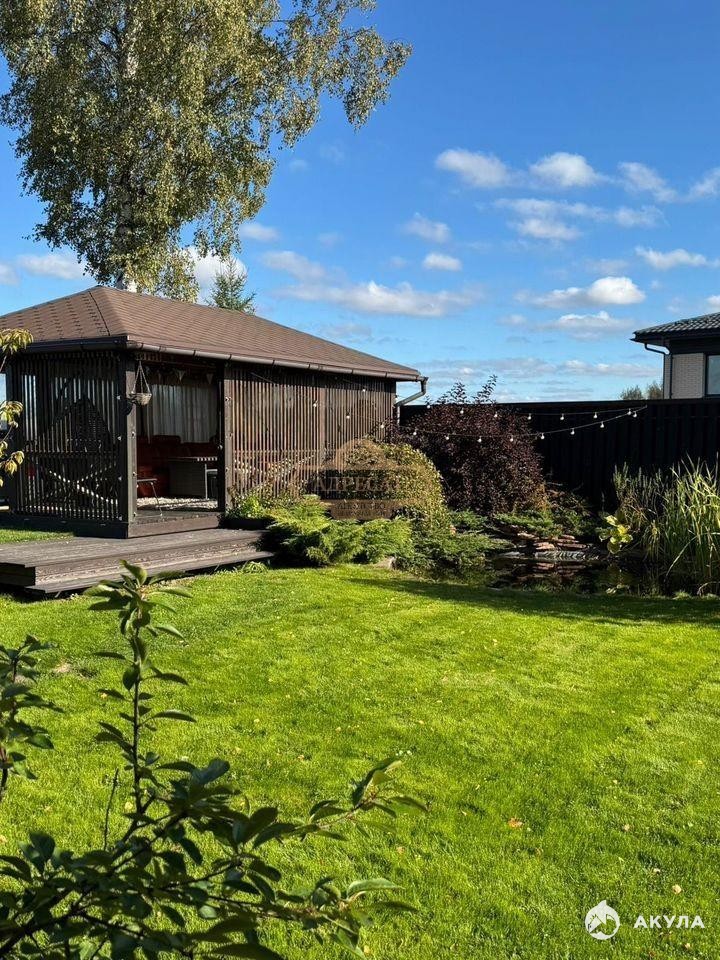 Участок ровный, прямоугольный, с привлекательным рельефом. Грунтовые воды залегают на глубине 4 метров. На участке выполнен качественный дренаж, есть ландшафтный дизайн с автополивом. Вас порадуют терраса, беседка, пруд и зона барбекю. Также на участке расположена баня, рядом — навес на две машины и гараж.