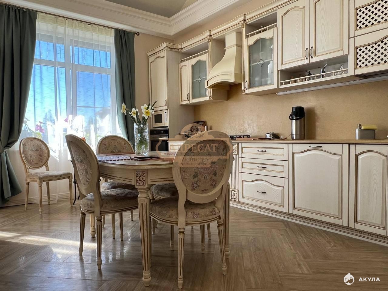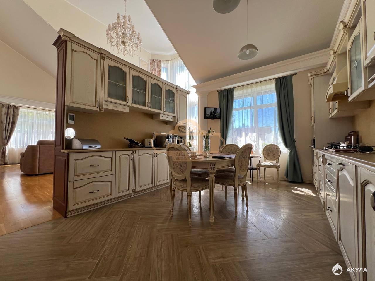 Дом очень теплый и уютный, полностью мебелирован. Кухня - гостиная со вторым светом, что делает ее более просторной. Вся мебель выполнена по эксклюзивному заказу у лучших премиальных производителей, материал исполнения ДУБ.