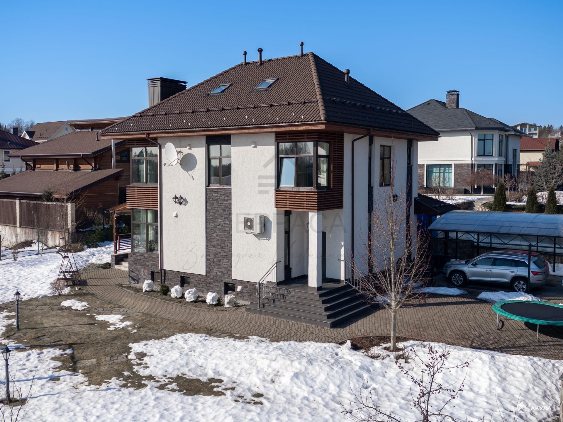 Ваш участок в 12 соток уже полностью благоустроен: проведены ландшафтные работы и выращен сад. Сам дом (268 кв.м) построен по европейским стандартам.