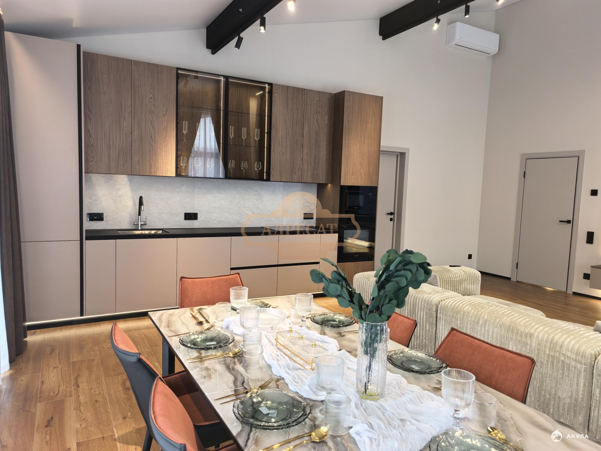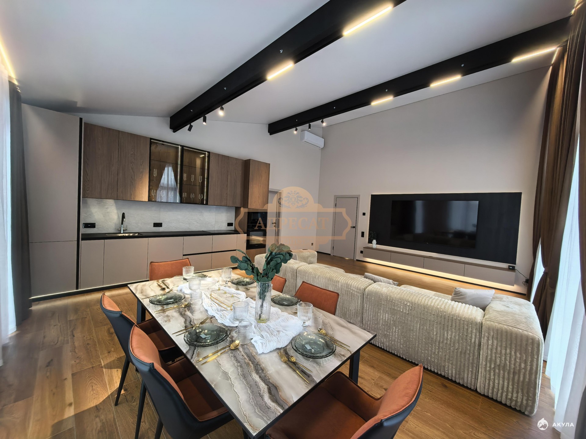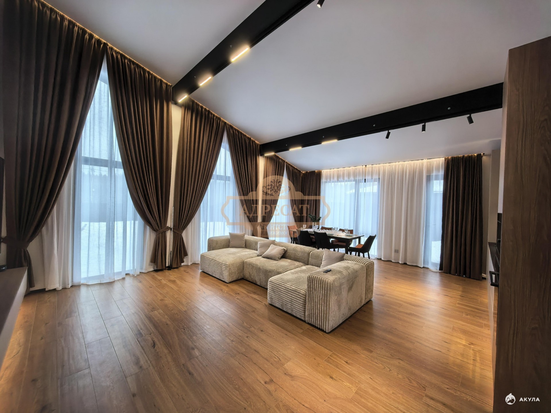 Дом очень теплый и уютный, полностью мебелирован. Дизайнерский проект в пастельных тонах. Высокие натяжные потолки, еврокрабы, встроенные карнизы, ниши с подсветками.