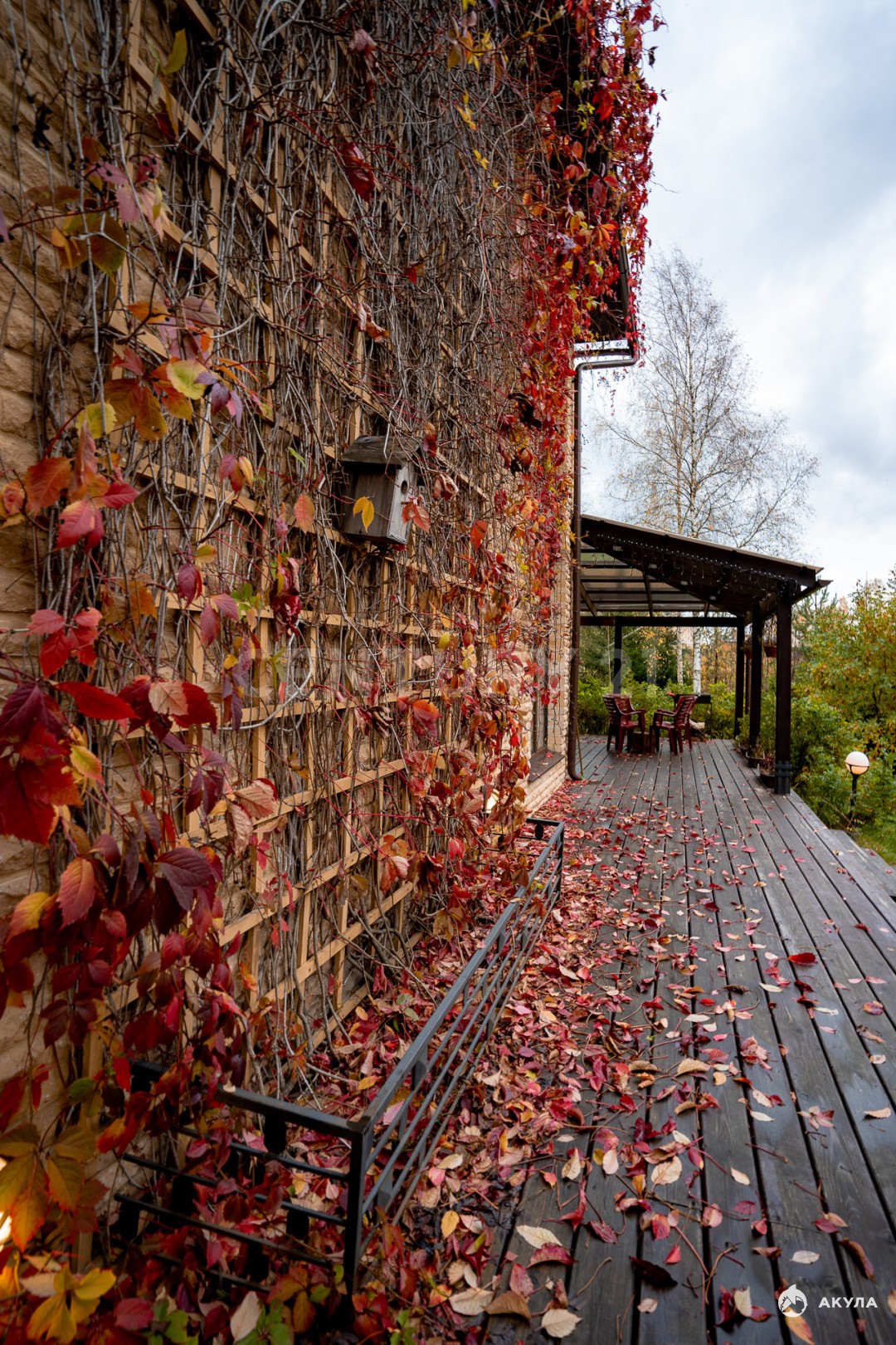 Участок 90 соток — это настоящий частный парк в окружении высоких многолетних сосен, елей и берез. Здесь царит особая атмосфера умиротворения и чистый воздух. Удобные дорожки ведут через всю территорию к трем собственным прудам, где водятся карпы.