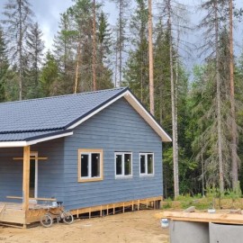 Продается участок 12 сот (крайний к лесу), ровный, посажены маленькие сосны и жилой дом 111, 5м2 (1 этаж), каркасный на сваях, наружная отделка полностью готова, внутри зашиты потолки вагонкой, пол и стены утеплены и готовы к чистовой отделке, на окнах установлены стекло пакеты,...