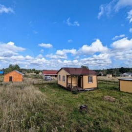 №343355 192 Предлагается к продаже 1-этажный жилой домик г.п.2016. площадью 26, 1кв.м. + застекленная веранда 10 кв.м, на земельном участке 6 соток ИЖС. Лен.обл.Выборгский р-он.п.Первомайское ул.Вишневая д.2А. Все в собственности. Конструктив: металлический каркас, утеплитель...