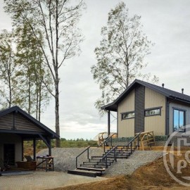 №344276 Новый загородный дом в Рощино, в коттеджном посёлке в 5 минутах пешком от живописного озера. Участок 17 соток коттеджного посёлка «Царство-Королевство» зимний жилой дом (212 м2) и баня (86 м2), Все коммуникации: электричество 30 кВт, центральный газ, биостанция, скважина,...
