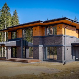 №343368 2-х этажный загородный дом в современном стиле в окружении сосен. • 4 просторные спальни с высокими потолками и тремя балконами • Двухсветная гостиная с панорамными окнами «в пол». Дом очень просторный, выполнен из качественных материалов (газобетонный блок - ЛСР 400...