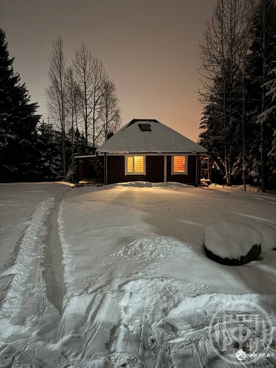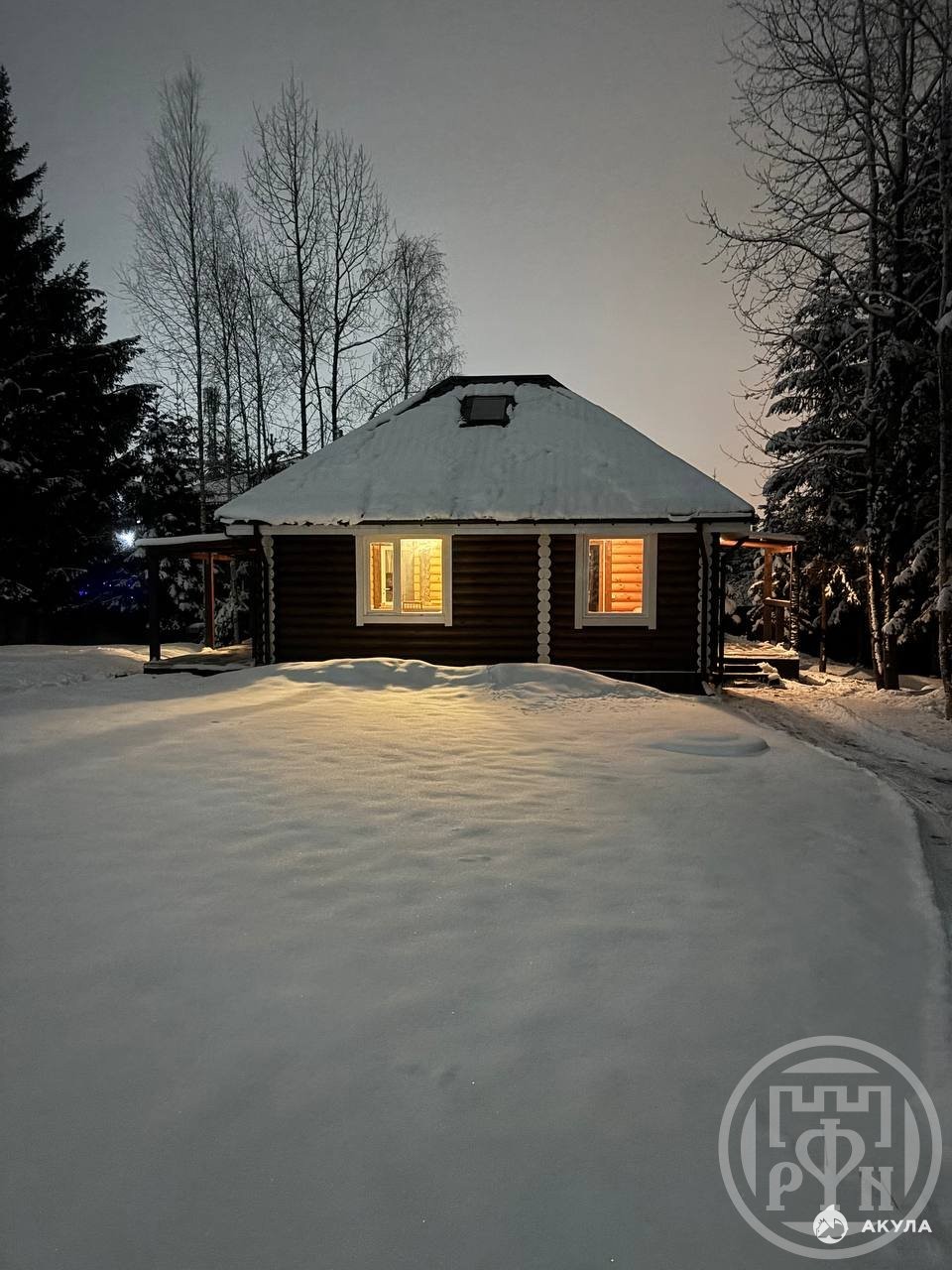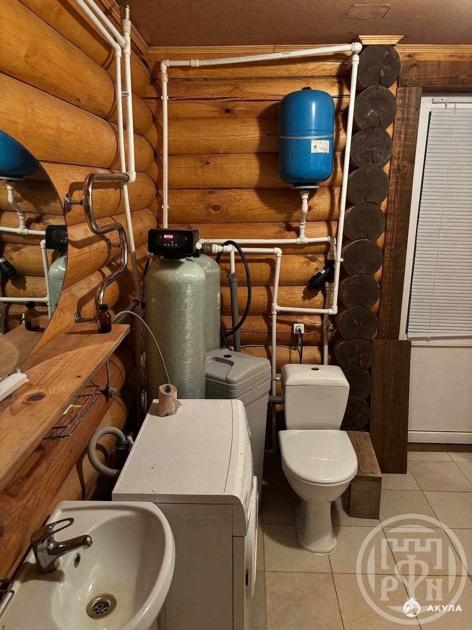 Дом:104 м.кв., построен из оцилиндрованного бревна диаметром 240 мм . Фундамент: буровые сваи заполненные цементно-песчаной смесью. Коммуникации: отопление от газового котла, канализация -септик, вода питьевая-колодец 5 колец (система фильтрации), электричество -5 квт. ( с возможностью увеличения до 15 кВт). Дом состоит из двух этажей. На первом этаже расположена кухня-гостиная , две спальни и сан/ узел с баней на дровах. На втором этаже единое пространство 25 м2.